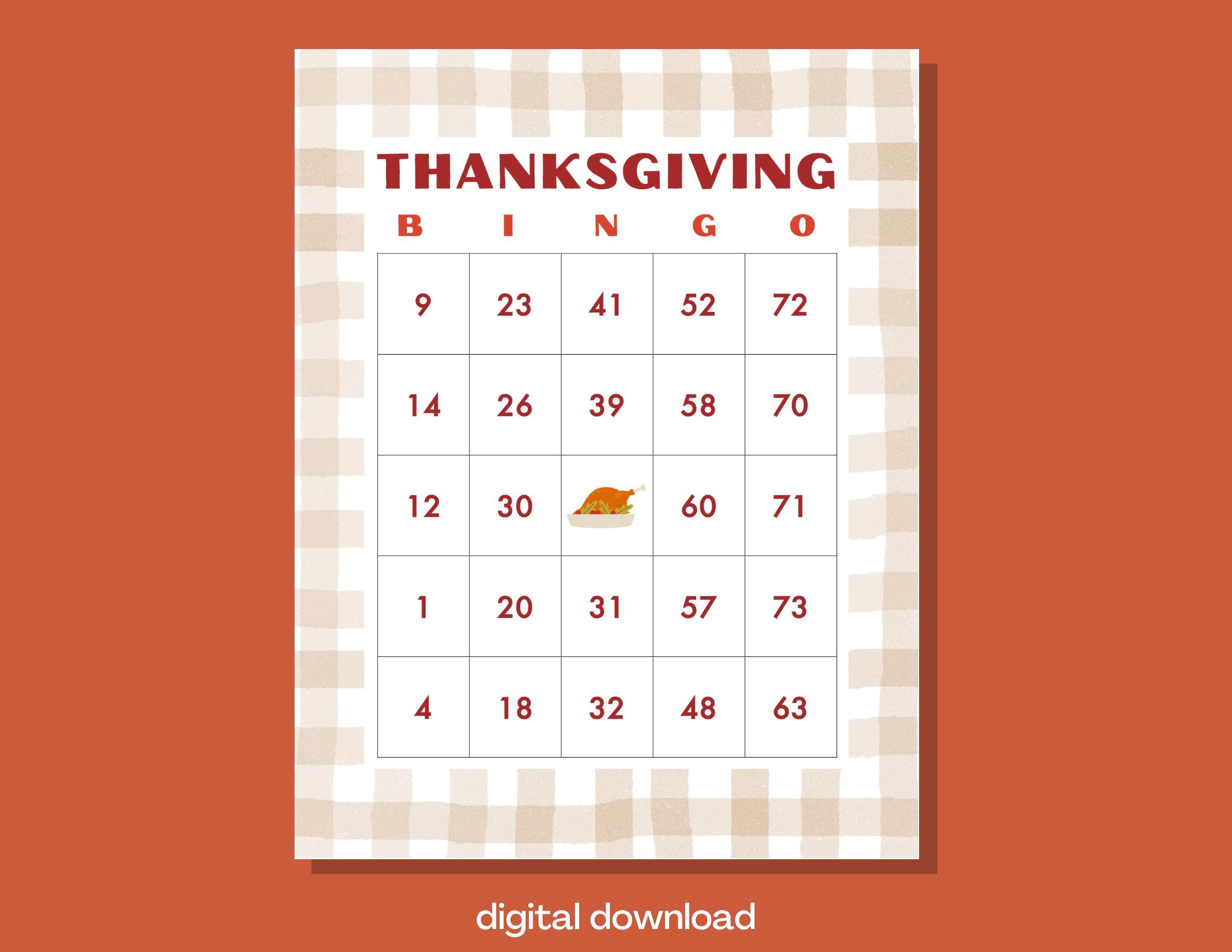 🦃 Get Ready for Festive Fun with Thanksgiving Bingo with an understated Gingham Design!