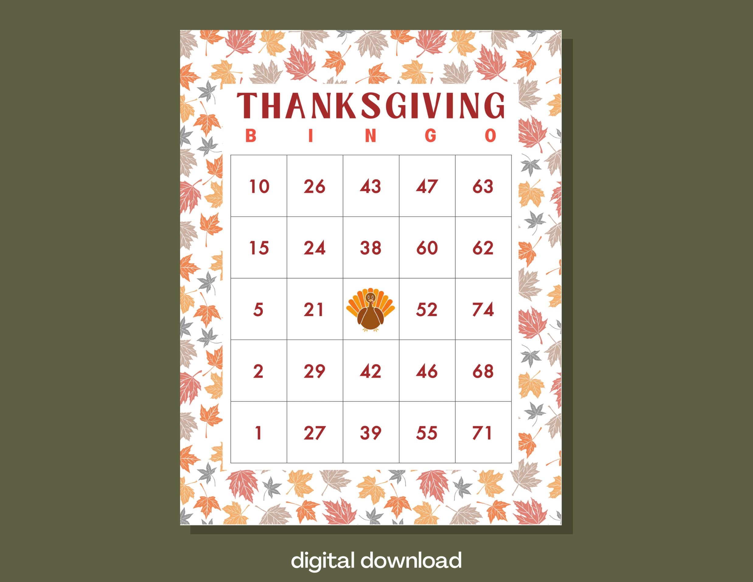 🦃 Get Ready for Festive Fun with Thanksgiving Bingo with a Festive Leaf Design!