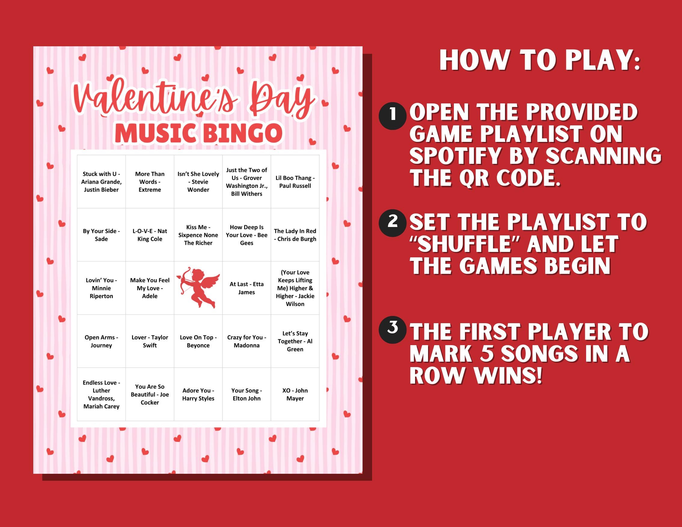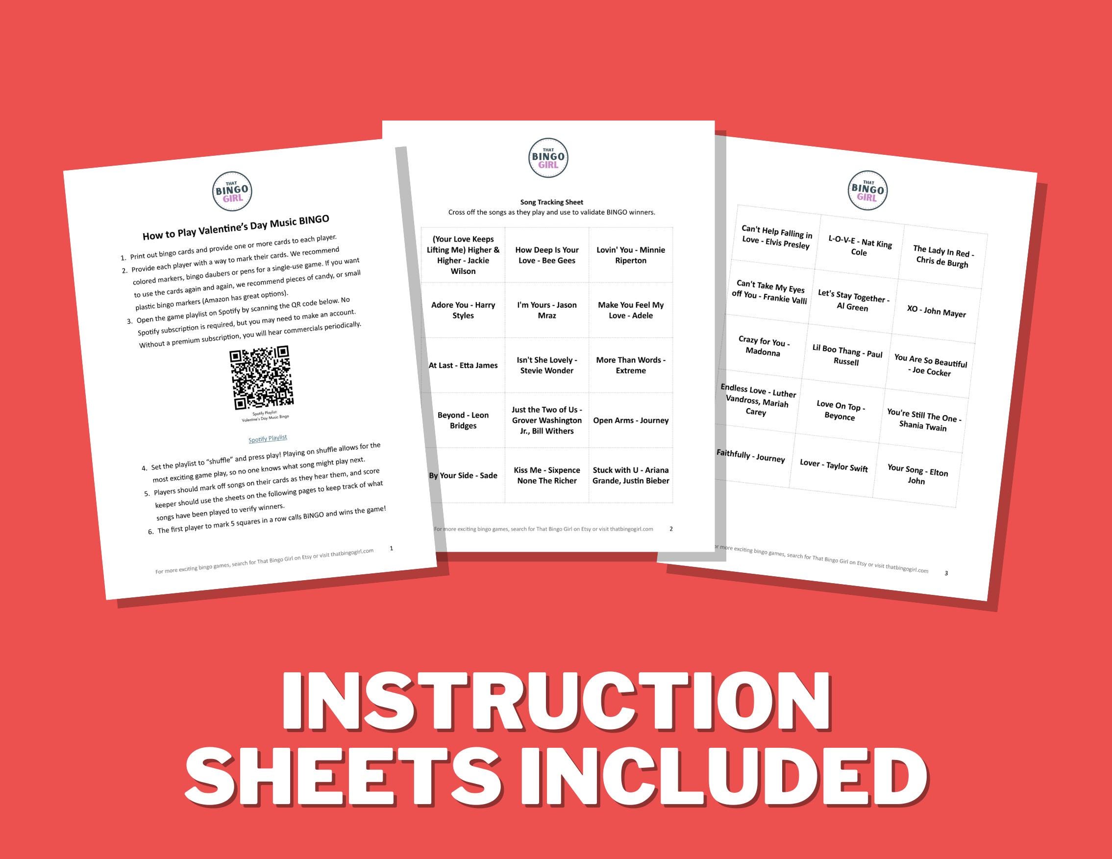 • 30 unique Valentine’s Day Music Bingo cards (PDF)