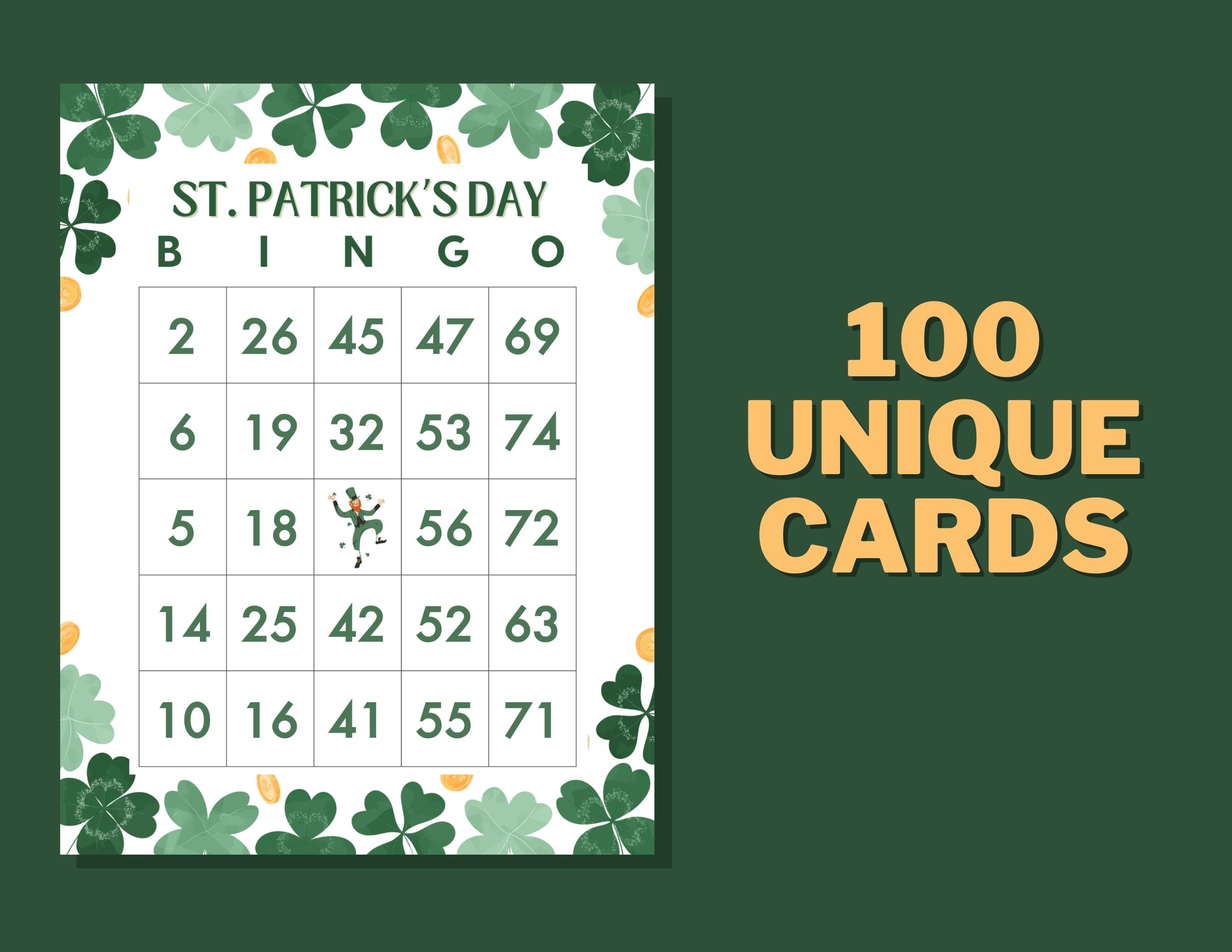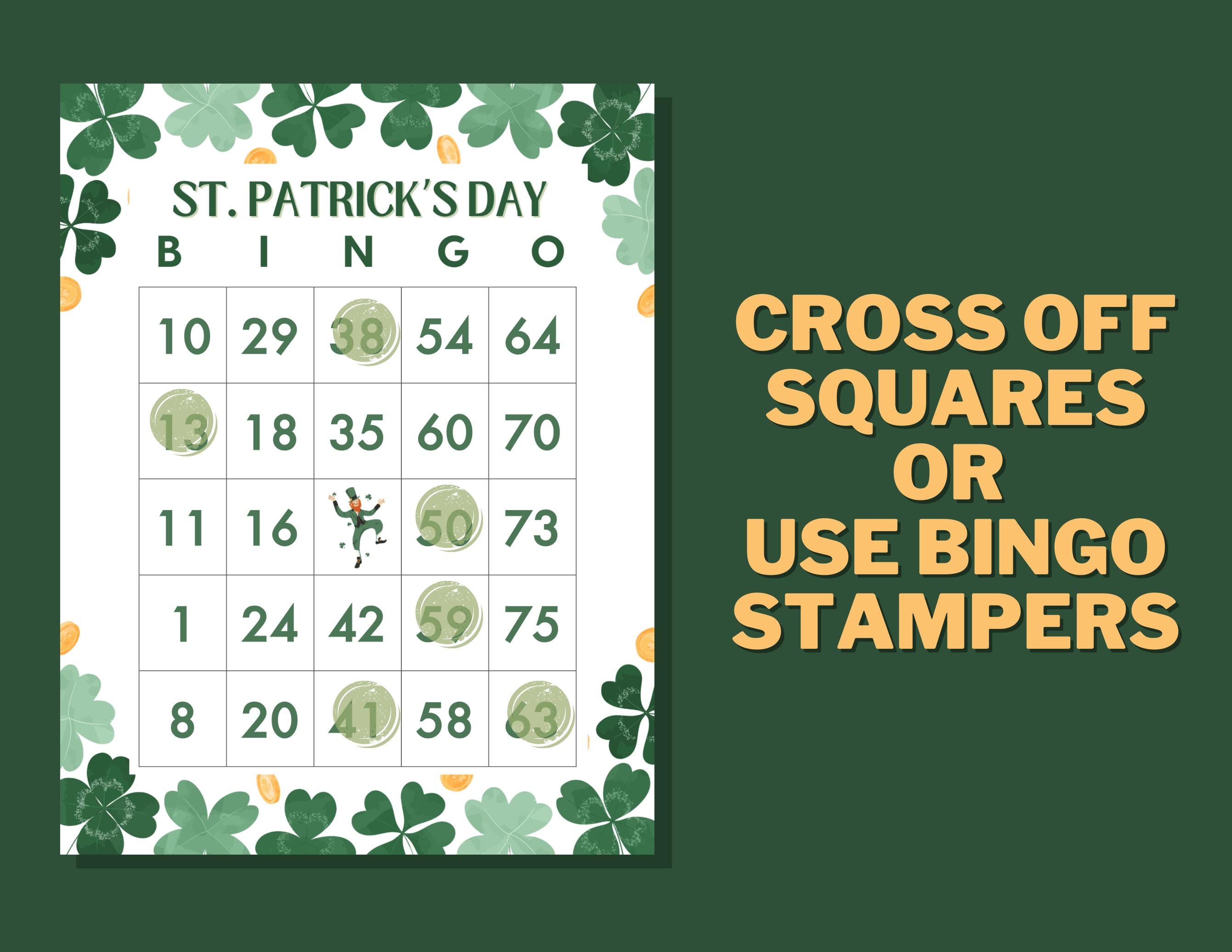 There are many ways to play. Mark off each square as it’s called using a marker or a bingo stamper, or use festive treats like chocolate coins or green candies to cover each square. If you need more than 100 cards or would like a specific design, send me a message and I’d be happy to discuss a custom order. I can even create this design with words instead of numbers!