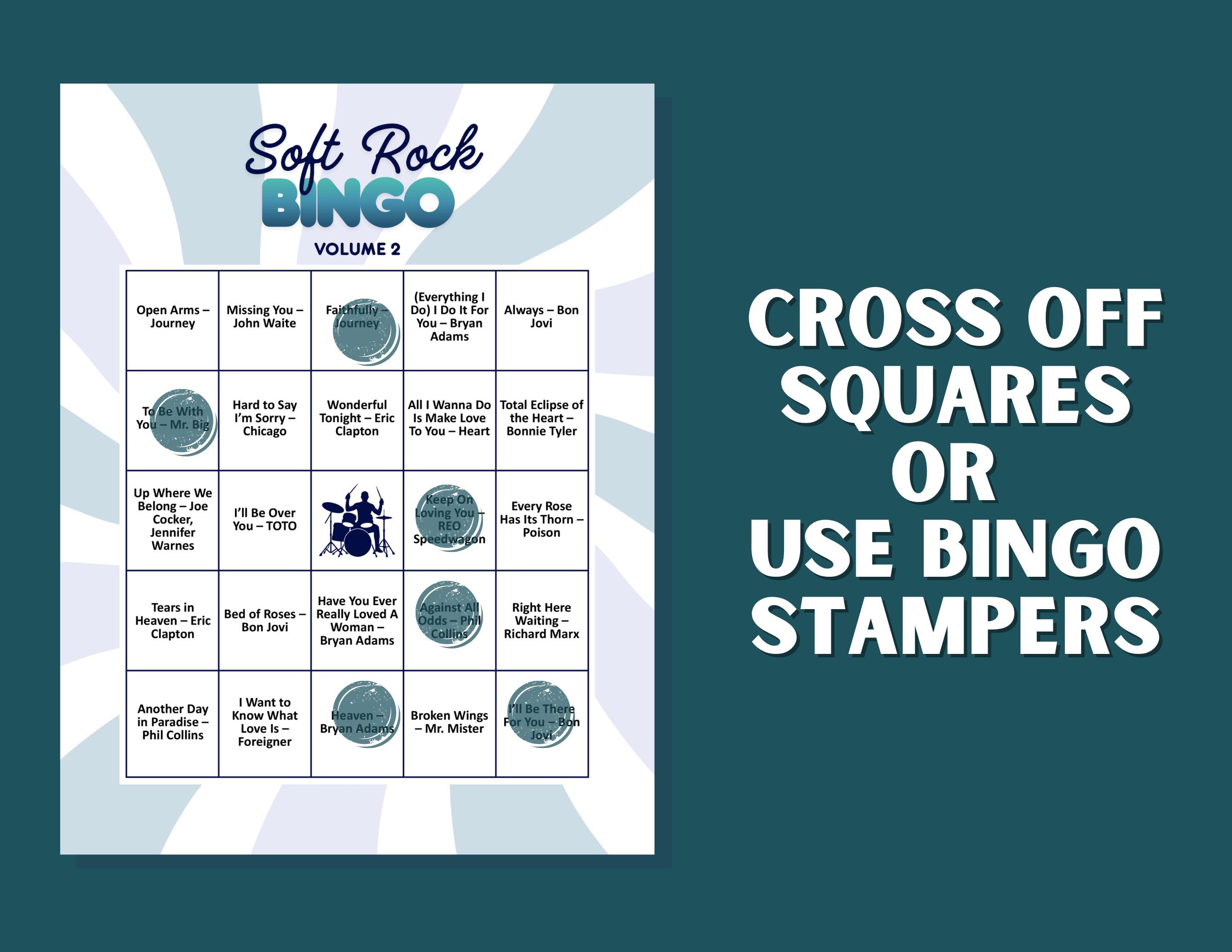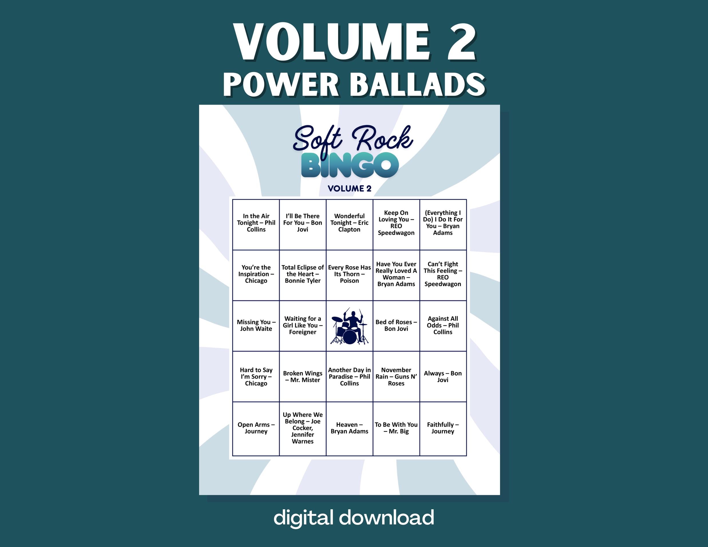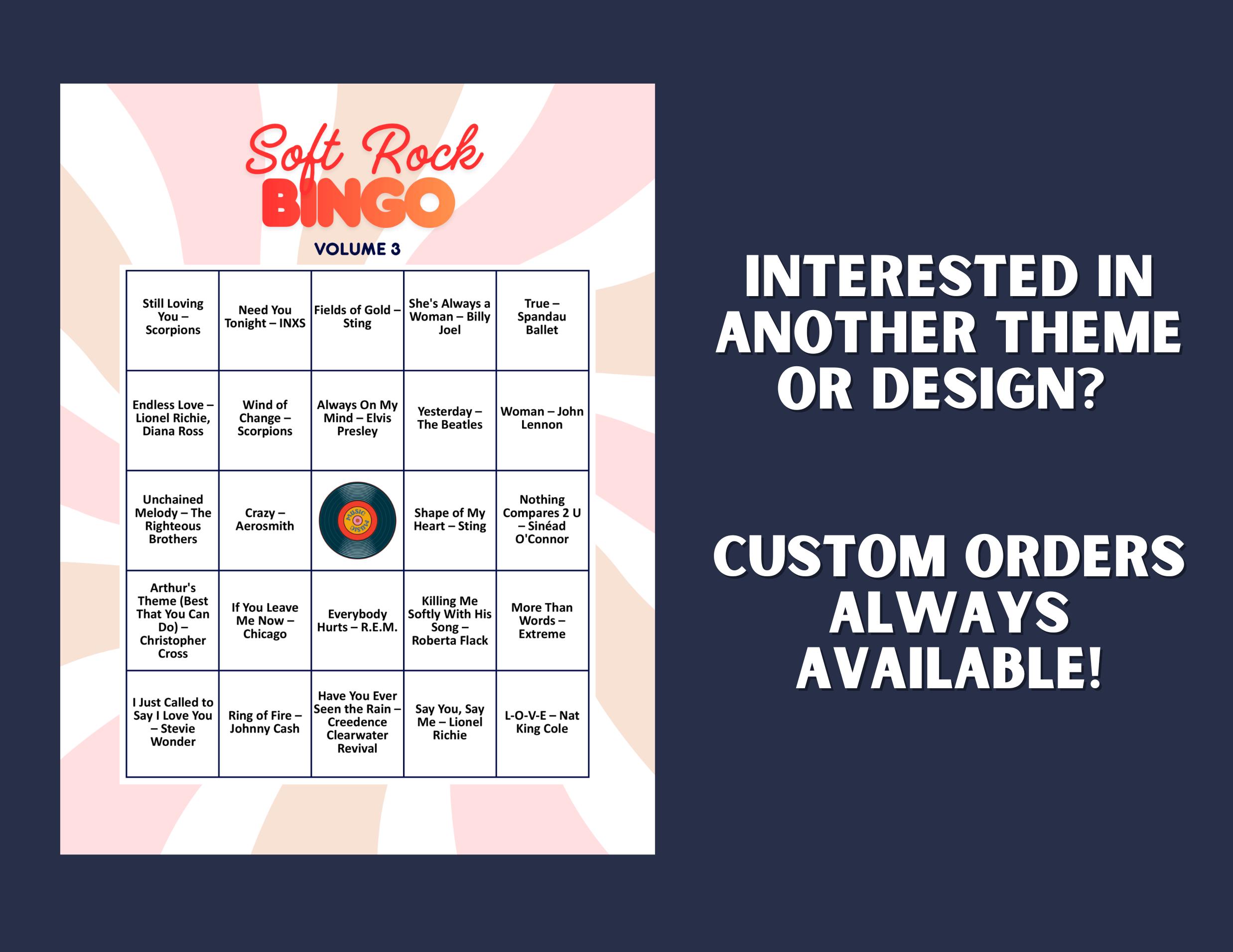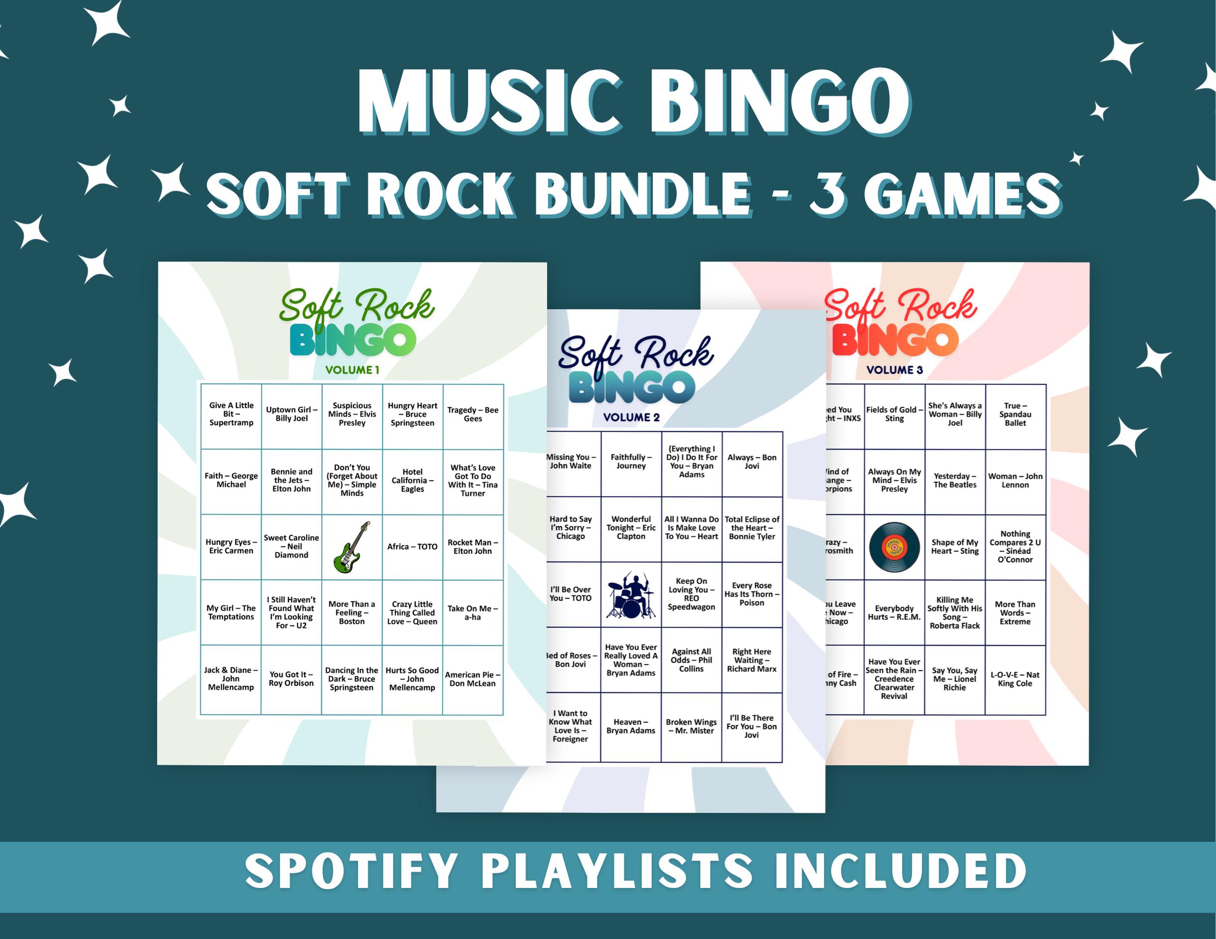This bundle includes Soft Rock Music Bingo Volume 1, Volume 2, and Volume 3.