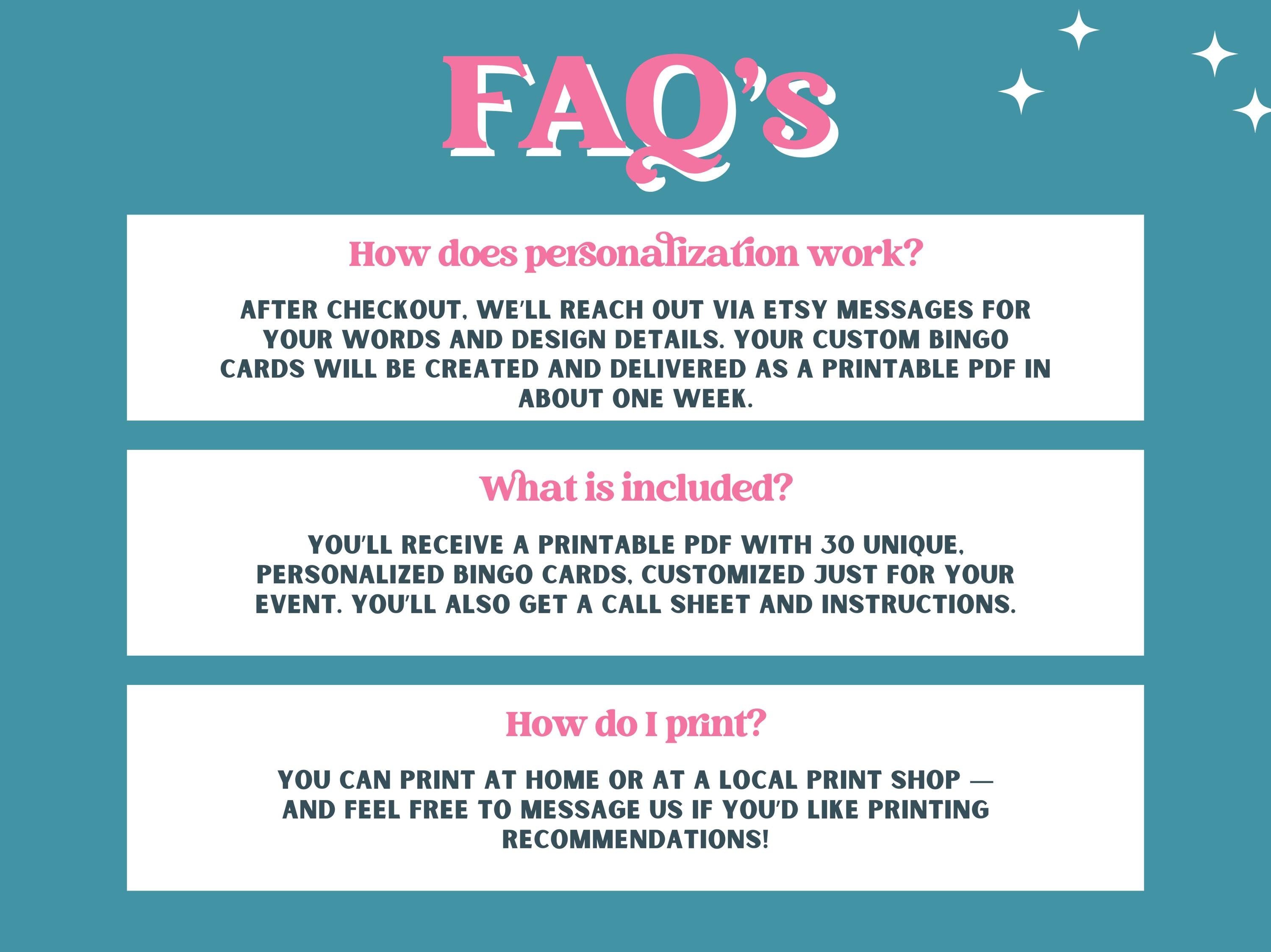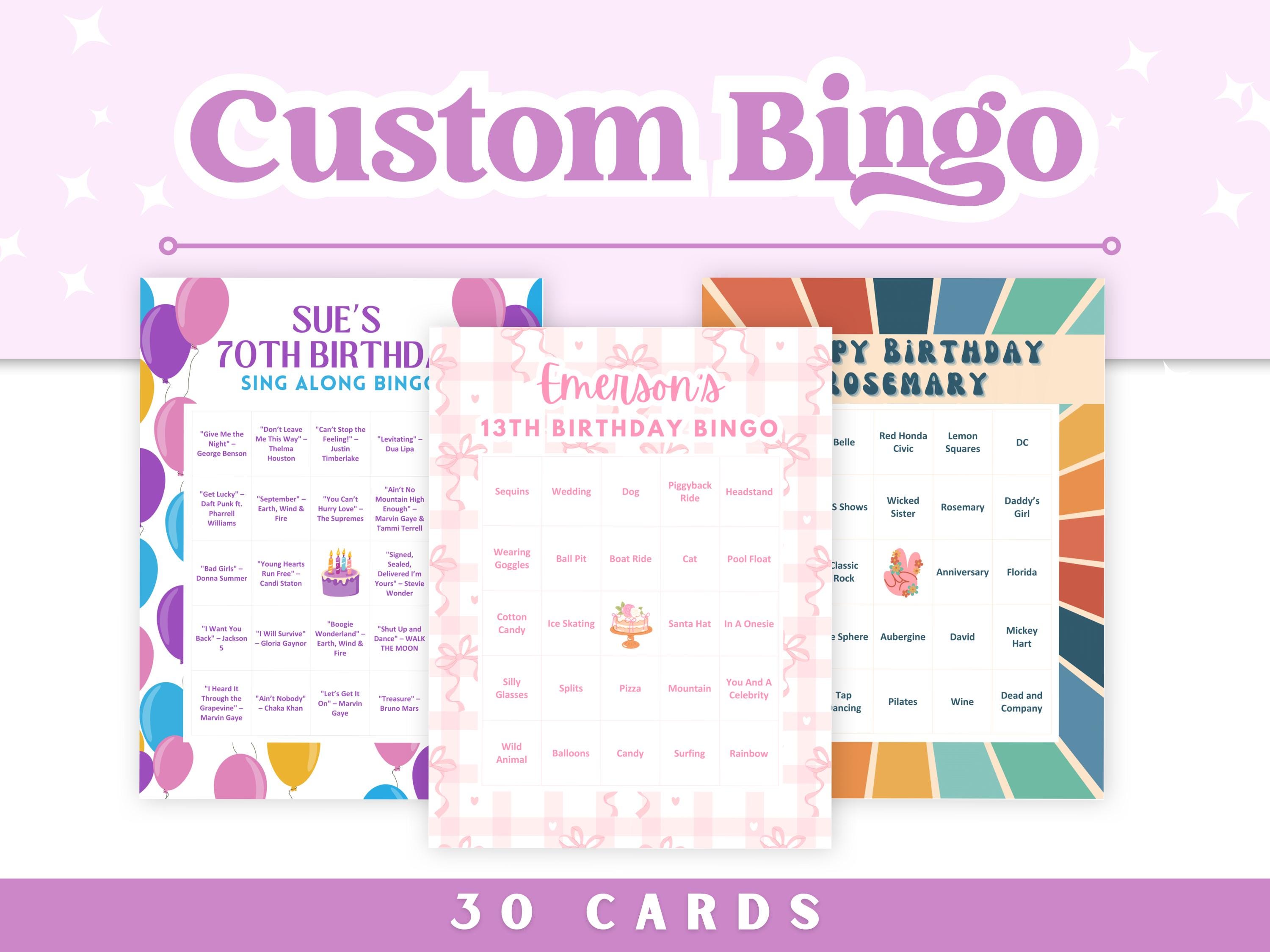 Custom Bingo Cards | Set of 30 Digital Download Bingo Cards